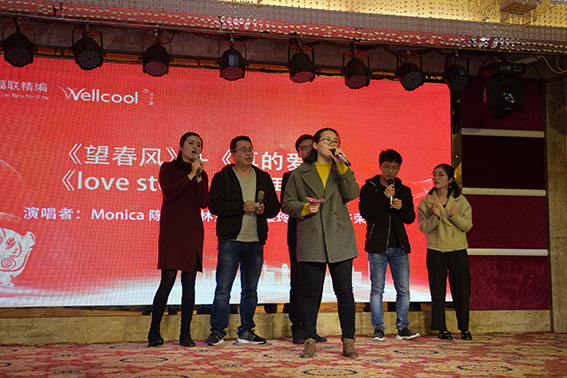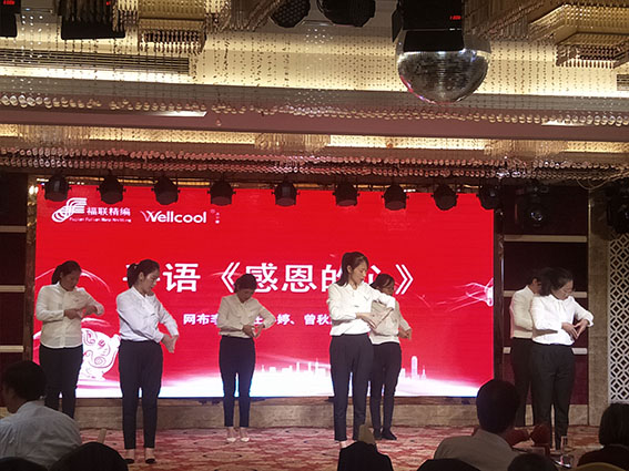 晚會(huì)的尾聲是重磅的壓軸節(jié)目,沃爾康全體員工齊聚在舞臺(tái)上,共同唱著愛(ài)的奉獻(xiàn)