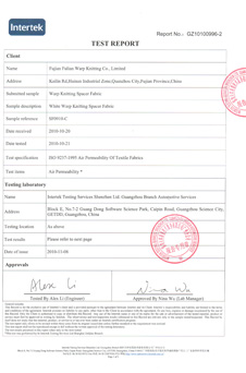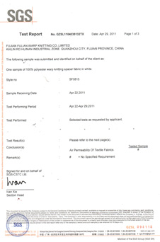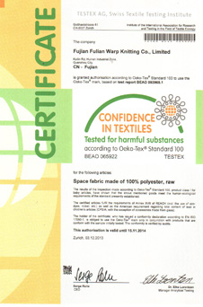 公司首家建立中國3D織物檢測標(biāo)準(zhǔn)Q/FLJB001-20007、產(chǎn)品獲得了OeKe-TEX、SGS、Intertek、3C等系列認(rèn)證。設(shè)立國內(nèi)先進的檢測室,擁有各種檢測設(shè)備,完成從原料到成品的強度、耐疲勞度、環(huán)保程度等多項指標(biāo)的品質(zhì)監(jiān)測和管理。